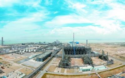 项目名片 古雷炼化一体化项目由福建炼油化工有限公司和旭腾投资有限公司各占50%股份合资建设,总投资278亿元。 项目包括百万吨级乙烯装置,以及年产10万吨/70万吨的环氧乙烷/乙二醇装置、60万吨/年苯乙烯装置、35万吨/年聚丙烯装置、30万吨/年乙烯-醋酸乙烯树脂装置、10万吨/年热塑性弹性体装置等9套化工装置及配套公用工程。 主要产品既包括苯乙烯、环氧乙烷/乙二醇等基础产品,又涵盖乙烯-醋酸乙烯树脂、聚丙烯、热塑性弹性体等高端材料,是中国石化化工业务坚持“基础+高端”一体推进的具体实践。 本报讯 记者符 慧 通讯员邱丽平 报道:8月17日13时16分,海峡两岸最大石化产业合作项目——福建漳州古雷炼化一体化项目乙烯装置裂解炉投料,8月18日20时16分产出合格乙烯,从中交到成功开车只用不到3个月时间,创近年来中国石化大乙烯中交开车最快纪录,标志着古雷炼化一体化项目顺利投产。 该项目是中国石化重点工程,预计年产值达260亿元,将以高端材料产品强链延链补链,可拉动当地超千亿元下游产业,将为海峡两岸融合发展共赢作出积极贡献。福建炼化总经理、古雷石化副董事长刘向东表示,古雷炼化一体化项目全面建成投产,对推动福建省高质量发展和中国石化构建“一基两翼三新”产业格局、探索海峡两岸石化产业融合发展共赢新路,具有重要实践意义和深远影响。 项目启动之初,中国石化与台资合作方商定,由中国石化全面负责项目建设和管理。中国石化派出中国石化项目管理公司(工程部南京项目管理中心)全权负责,并采用项目指导委员会+一体化项目管理部+监理+承包商管理模式,按照中国石化工程建设“3557”管理体系全程管控项目建设。中国石化工程部抓好全程组织协调工作,物装部、能环部等总部相关部门充分发挥“大兵团”作战优势,多次到现场提供服务、解决问题;一体化项目管理部对安全、质量、进度、投资、合同、廉洁等6方面工作进行专业管控。 模块化施工、专业化管理取得显著成效。项目于2018年12月26日打下第一根桩,今年5月28日实现高质量高水平中交,完全满足计划节点要求,安全人工时、现场焊接一次拍片合格率达到国际领先水平。 项目建设时,业主古雷石化就推动生产准备深度介入。福建炼化副总经理、古雷石化总裁张西国介绍,他们将员工派到镇海炼化、茂名石化、扬子石化等企业学习经验,同时将建设现场作为练兵场,深度介入现场安装调试,快速开展“三查四定”,努力做到试车成功时“这边出产品,那边出人才”。 中交后,高质量开车成为各方一致追求。福建省委省政府、集团公司党组高度关注、加强指导,要求加大专业力量投入,细化优化开车方案,确保安全环保开车。工程部组织集团公司高级专家、技能大师等审查试车、开车方案,检查各装置投料条件,分析讨论重点难点问题;会同化工事业部、物装部成立总部开车服务团队,派遣专人常驻现场,严格进行投料条件确认,研讨解决热电等装置试车问题。 为确保投料试车一次成功,古雷石化充分借鉴同行经验,抓好试车开车方案优化工作,将乙烯裂解作为开车主线,结合项目建设进度,倒排装置试车时间,在主要装置和主要工序投料生产前,外购物料打通后续流程,及时整改存在的问题,确保主要装置投料后安稳长满优运行。同时,项目管理部和各承包单位驻扎现场,全力配合业主做好收尾工作。