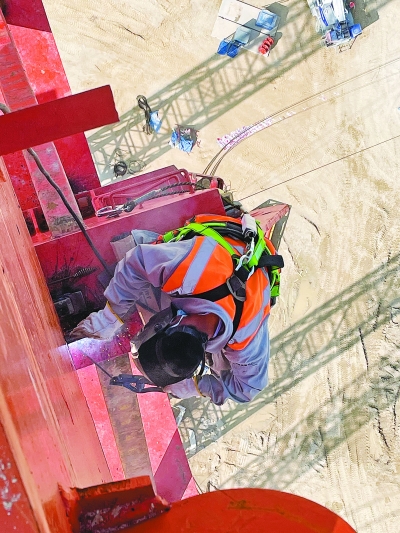 图1:项目部完成门式塔架大梁组装。图2:项目部组装完成2000吨履带吊车。图3:员工进行组装施工。