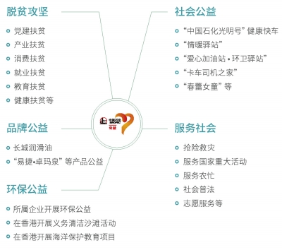 连续17年开展中国石化光明号健康快车项目,为18个省区39个地区超过4.7万名贫困白内障患者带来光明和希望。持续9年开展“情暖驿站”公益活动,为“返乡摩骑”免费加油,提供热粥、姜汤、休息室等免费服务。在全国2617座加油(气)站设立环卫驿站,让环卫工人拥有温暖休憩的港湾。