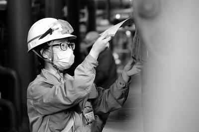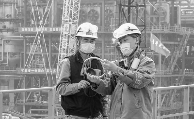 燕山石化催化裂化装置员工为“三废”空冷设备打压试水治理侧漏隐患。 李 雪 摄 燕山石化炼油一厂工艺员检查装置现场标识牌。肖 雪 摄 燕山石化炼油大检修中设备管理人员对安装备品备件进行再次检验。薛 立 摄
