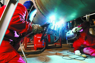 施工人员使用全自动焊接技术提升工程建设质量和效率。  张 鹏 摄