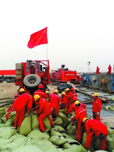 大图:青年突击队在压裂现场实施加砂作业。 小图:党员在沙参2井教育基地开展活动。 史广洲 摄