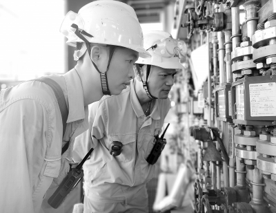 ?今年以来,石脑油价格持续走高,广州石化紧贴市场抓优化,通过提高柴油加氢改质装置苛刻度、焦化装置汽油干点及两套蒸馏装置石脑油干点等措施,全力增产石脑油。1~7月,石脑油产量同比增长16.43%,创效2739万元。图为8月12日,柴油加氢改质装置操作人员在监控关键设备运行状况。 朱 晶 黄敏清 摄影报道