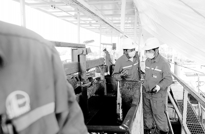 针对溱页1HF井采用油基泥浆钻进的情况,华东石油局泰州采油厂加大现场检查力度,要求钻井队伍为油基泥浆罐搭建防雨棚,加装排风扇,督促废旧油基泥浆和岩屑及时转运至处理厂家,确保环保钻进。图为8月29日,监督人员在溱页1HF井检查油基泥浆的环保措施落实情况。沈志军 摄 胡晓刚 文