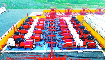 8月,石化机械超大功率全电动压裂成套装备在焦页11东平台开展压裂作业。 任文喜 摄