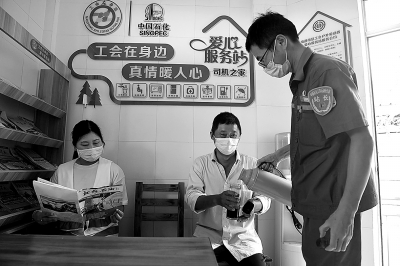 8月以来,江苏南通石油为29座“爱心服务站”增设餐饮、洗浴、住宿等服务项目,将原先仅为环卫工人、交警等户外劳动者提供服务的“爱心服务站”,打造成服务所有司机的“司机之家”,为客户带来更多便利。图为加油站员工为客户添加热水。 秦 茹 陈明军 摄影报道