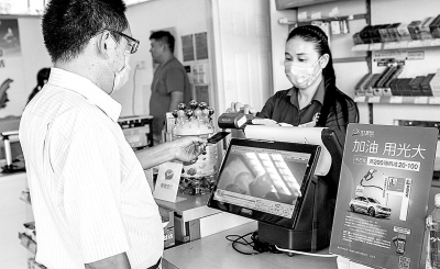 近日,安徽池州石油与交通银行、光大银行、工商银行、中国银行等第三方开展合作,联手推出了加油优惠、购物返现、充值满减等活动,推动油品、非油品销售的同时,稳定了老客户、开发了新客户。截至目前,池州石油利用他方营销资源实现创效30余万元。图为客户用光大银行卡在尧渡加油站刷卡消费。孙宗奎 摄