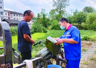 当前正值烟叶采摘、烘烤、归仓的关键期,贵州黔东南石油镇远县公司扎实开展“我为群众办实事”实践活动,通过走访调研了解烟农需求,制定用油营销方案、推出支农惠农活动,并结合实际延长营业时间,提供免费送油上门等服务,为烟叶顺利采摘、归仓提供保障,受到烟农好评。图为员工为农机具加油。魏 伟 陈金瑞 摄影报道