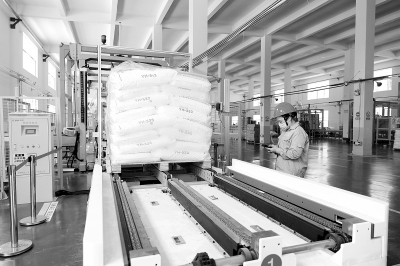 今年以来,巴陵石化加快科研成果转化,推进新产品工业化生产,1月至8月累计产销合成橡胶新产品两万吨,同比增加1.2万吨,成为新的效益增长点。图为技术人员在SEBS产品生产线,使用遥控器导引运输车装载新下线的橡胶产品。 徐亮亮 摄 李哲武 文