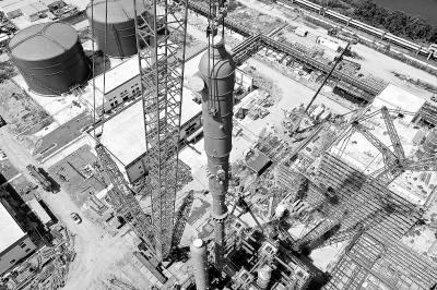 9月3日、5日,炼化工程集团宁波工程公司承建的镇海基地聚丙烯(PP)装置核心设备——多区循环反应器主要构件提升段和沉降段,先后吊装就位于该装置的反应框架。采用这一新颖生产技术的聚丙烯装置,聚合、造粒一条生产线,可显著改进产品性能,拓展产品应用范围,生产出可取代其他材料的产品。图为9月5日,长46.75米、重123吨的沉降段实施吊装。张见明 摄