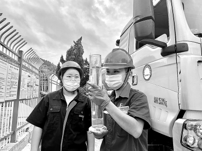 ▲贵州黔南石油坚持油品闭环管理,通过GPS定位、车载监控、电子铅封等方式保障油品运输安全,确保加到油箱中的油品质量100%合格。图为9月17日,都匀市会云桥加油站员工观察油品外观。 莫芳璐 摄