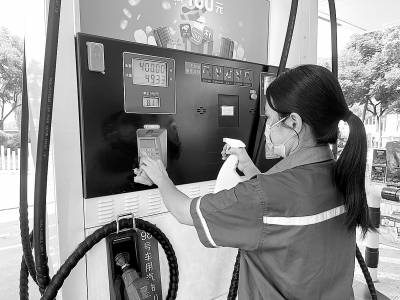 9月12日,福建厦门突发新一轮疫情。厦门石油第一时间召开专题会议部署疫情防控工作,要求各部门坚持一手抓疫情防控、一手抓经营保供,确保疫情防控、生产经营双胜利。图为厦门石油加油站员工对加油机进行消毒。陈荟轩 摄