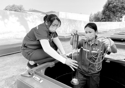 9月,河南焦作石油开展质量月专项活动,除了完善制度、加强考核执行,还要求机关、经管部、加油站多层次联管联控油品的出库、验收,从源头把控油品质量。图为泌阳石油加油站员工提取油样送检。刘 芳 摄