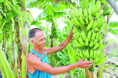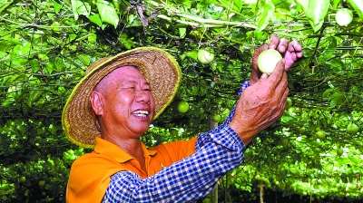 周汝权 柯裕清/图 张亚培 刘金超/文 “去年百香果获得丰收,今年又是硕果累累,大家都很高兴。”南方的九月,阳光依然热烈。9月初的傍晚,在茂名石化挂钩扶贫的古张村里,村民们在百香果园里忙碌着。 在他们身边,是百香果园产业基地。透过余晖,看到黄澄澄的百香果已经挂满枝头,大伙儿一边劳作一边谈笑风生。 百香果园主管张亚任穿着橙色的T恤,戴着草帽,带领着村民吴金由、杨土莲,采摘百香果,然后挑选、称重、打包果箱。张亚任、吴金由、杨土莲是百香果园产业基地的员工,张亚任有种植经验,被基地聘为主管。以前,他们都是村里的困难户,特别是吴金由,由于妻子多病,他无法安心离家打工,家里十分贫困。两年前,听说百香果园产业基地招收工人,吴金由、杨土莲先后找到茂名石化驻村干部李亚标和村委会干部,表达报名意愿。成为基地工人后,他们早出晚归,一心扑在果园里,种植、除草、施肥,每天都干得汗流浃背。收获季节,他们还要负责采摘果子、打包外销等工作。 “我们种的黄金百香果,市场上很受欢迎,成熟后能卖个好价钱。”说起现在的收入,杨土莲底气十足,“产业基地离家近,我能照顾家,每个月还有3000多元的收入,非常满足。” 工余时间,吴金由喜欢在果园旁边的香蕉林里散步。“这片香蕉很快就成熟了,我们还能再多一笔收入”。