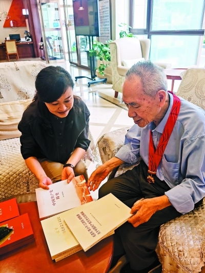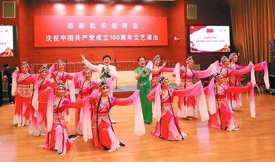 总部机关老同志在庆祝建党百年文艺演出中,献上精彩的京剧表演,诠释国粹之美。 董翔宇 摄 燕山石化工作人员来到离休干部吴嘉祥家,为老人送上节日问候,还送去了党史学习资料,丰富老人的精神生活。 刘 东 摄