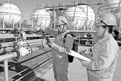 四季度以来,沧州炼化根据天气给设备运行带来的变化,强化LDAR(泄漏检测和修复)工作,对17万个监测点制定不同的检测周期,强化LDAR过程控制,对查漏、修复、复测、数据评估实行闭环管理。图为10月12日,员工对球罐区阀门压盖进行泄漏检测。于铁洪 摄 伏铁刚 文