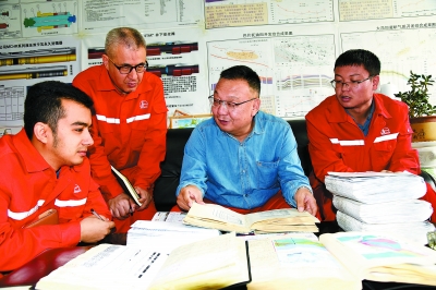 □单旭泽 焦 睿 文/图 阳光斜射进窗口,光影打在办公桌的一本笔记上,封面上红色的篆刻字体“塔河情”让人眼前一亮。 笔记本厚达10厘米,翻开看,里面有167个油藏图、188个曲线图、180个表格,还有4万字的分析、备注、标示、疑问和思考心得。 笔记本的主人,是西北油田雅克拉采气厂总工程师陈波。他性格随和,沉稳大气,工作高效,严谨细致,被大家亲切地称为“波总”。 像这样的笔记本,陈波一共有100多本,有的已泛黄,有的已破损,每一本都记录着每一口井的点滴,和一个个悠远又走心的故事。 100本笔记:既是油藏“活字典”,又是井网“联络图” 陈波的笔记本扉页上,工整地写着:“慎思、慎言、慎行”,这是他的座右铭。 6年前,陈波来到雅克拉采气厂,他像关心自己的孩子一样关心每一口井,精细梳理每一个区块、精心分析每一口井,渐渐对雅克拉、大涝坝、巴什托、天山南等区块的情况了如指掌。 只要经手过的井,他都会详细记录相关资料。一般井记录完井地质方案、完井试油过程和地质资料,标注结论和地层认识;疑难井,将地震、测井、酸压、测试等施工图线打印出来,粘贴在笔记本上。一口井少则三四张,多则十几张。 工作28年来,陈波记了100多本200多万字的笔记。在他的办公桌上,总是摆放着三本笔记,分别是工程、地质和工作计划。计划从年初细分到季、月、周、日,井井有条、清晰明了。 “波总把每口井的情况都记在笔记里,融化在血液里,这些工作日志就好比油藏‘活字典’、井网‘联络图’。”提起陈波的笔记,开发所技术员于建印象深刻,“他是我见过的工作最用心的人。” 200万字心得:“把学习当成一辈子的习惯” 正如记笔记是一种习惯,学习则是伴随陈波的另一种习惯。 走进陈波的办公室,最引人注目的除了书柜就是墙上的图表,有雅站主工艺自控流程图、综合测井曲线图、气藏剖面图,还有各类工具图,上面很多标注,是陈波多年的学习心得。 “如果把自己所学的知识比作圆,越学圆越大,越学越感到需要学的东西太多。”这是陈波的心里话。为了学习,陈波放弃了很多休息时间,同事们经常看到他伏案查阅资料、研究油藏的身影。 陈波不但精通采油气工程、完井测试业务,而且对基础地质、物探、钻固井、测录井等业务也有很深的造诣,他还广泛涉猎国内外的前沿新技术,为雅克拉采气厂油气开采引进新的思维方式。 在陈波的笔记中,除了各类图表和曲线,更多的是他的分析、备注、标示、疑问、思考及心得,这些分别用各种颜色的笔标识,累计有200多万字。 看到有些技术员工作理不清头绪,对厂里的井况不熟悉,陈波严肃地说:“对待油气藏要用心,参数要脱口而出,哪怕是最小的地质数据也要牢记于心。”在他的带动下,这些技术员学习劲头足了,分析油藏心里也更有底了。 600小时备课:“波总小课堂”培养出技术骨干 在陈波众多的工作日志中,有一本是为开发所技术员准备的笔记,这是“波总小课堂”的备课本,也是“高端技术经典教案”。 作为主管开发所工作的负责人,陈波开办“波总小课堂”,利用晚上的时间为技术员授课。 从国内的石油行业到国际的尖端技术,从同行新的开发思路到雅克拉采气厂的同类区块应用,陈波把专业深奥的技术讲得通俗易懂,还会出奇不意地提问,让课堂充满悬念和惊喜,带领大家探寻更多科学高效的好方法,拓展更广阔的思维空间。 今年3月,陈波把“小课堂”移到施工现场,先后带着3批学员来到完井测试管理中心,学习采气井口结构和原理,帮助大家提升对高压采气井的井控应急处置能力。 “波总小课堂”是令科研人员既期待又兴奋的学习园地,也是雅克拉采气厂青工的一个成长品牌。开办6年来,虽然累计上课才80个课时,但陈波花在备课上的时间至少有600个小时。 孙柏林、姚田万等人通过“小课堂”的培养,个个成了单位的技术骨干。遇到技术上的难题,他们说:“有波总在,再复杂的难题我们也不怕!” 陈波(右二)拿出工作日志与同行进行交流。