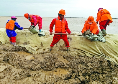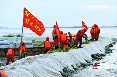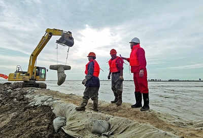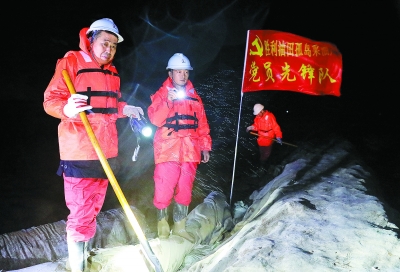 朱克民 王国章 孙劲松/图 王 瑞/文 10月15日5时,天空还一片漆黑。 黄河下游清三控导工程现场,伴着湍急的黄河水,防汛抢险党员突击队队员赵鹏,已经和同事打着手电筒,沿着黄河北岸的子坝巡查了一个多小时。深秋的清晨已经十分寒凉,他们的额头却已沁着一层汗珠。 “目前,黄河流量相对稳定。但由于河水长时间浸泡,堤坝随时会出现情况,我们成立了全部由党员组成的突击队进行轮班值守,24小时不间断加强对堤坝的巡护,及时发现情况并采取应对措施。”一晚上不间断的巡查,赵鹏的眼睛有些发红。 近期,受大范围强降雨和上游泄洪影响,黄河下游出现33年来最大洪峰。此次洪峰流量大、持续时间长、漫滩风险高。胜利油田有8家单位的生产区域位于黄河滩区内,涉及油水井上千口。 胜利油田迅速启动黄河防汛突发事件专项应急预案,500名党员干部员工第一时间赶赴一线加固堤坝,盯紧重要风险点,加密险工险段、堤坝等巡查频次…… 黄河沿岸,“党员先锋岗”“抢险突击队”的旗子随风飘扬。“党员是这次抗洪抢险第一线的主心骨,我们有能力也有信心打赢这场抗洪抢险攻坚战。”据相关负责人介绍,目前,黄河防汛形势依然严峻,他们将继续严阵以待,确保安全度汛。