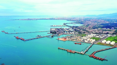 今年以来,福建联合石化大力开展环保提标改造行动,实施节能降碳项目,着力建设无泄漏装置、无异味厂区和花园式工厂,“三废”排放合格率始终保持100%,全力打造海峡西岸最美“明信片”。图为10月17日,碧水蓝天、栈桥拥海的福建联合石化鲤鱼尾码头。邱爱民 摄 肖万元 文