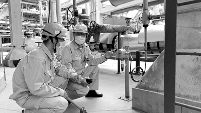 图为打通直供料流程后,炼油二部渣油加氢装置员工加强巡检,确保装置平稳生产。