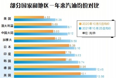 多国燃油价格“涨翻天”美国汽油价格同比上涨四成,英国人给一辆车加满油要多花10.8英镑,南亚多国因能源涨价引发物价飞涨2021年10月29日 来源: