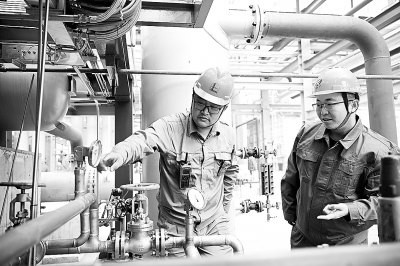 10月31日,青岛炼化“青岛氢能资源基地项目”建成中交,转入生产准备阶段,按计划将于11月底投产。这是中国石化在山东地区的首座规模化区域供氢中心。该项目采用中国石化自有知识产权的S-PSA燃料电池氢生产技术,占地面积小,动力消耗低。图为项目工作人员检查仪表设备。刘 强 摄