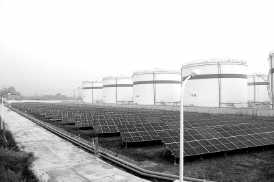 近日,湖北襄阳石油投资200多万元,在余家湖油库建设的太阳能光伏发电站开业。该发电站光伏板面积2500平方米,设计年发电量45万千瓦时,预计每年节约油库用电费用36万元。图为余家湖油库光伏发电站现场。樊春华 摄