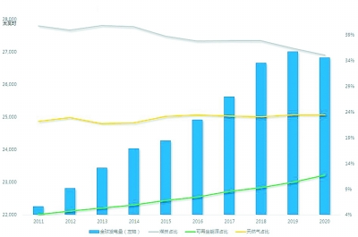 全球发电量及能源消耗占比