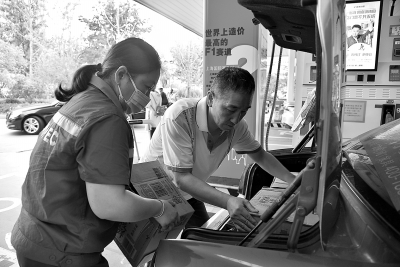 上海沪西石油明海加油站员工帮顾客搬运商品。张玉洁 摄