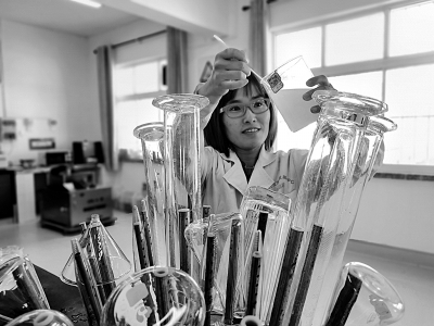 由中原石油工程井下特种作业公司研发的CMHPG酸性压裂液体系,首次在中原油田濮7-140井试验应用,一次压裂成功,压裂后试验井日产液5.5立方米、日产油4立方米,已稳产1个月。图为11月9日,技术人员在观察压裂液交联变化情况。马洪山 马 军 摄影报道