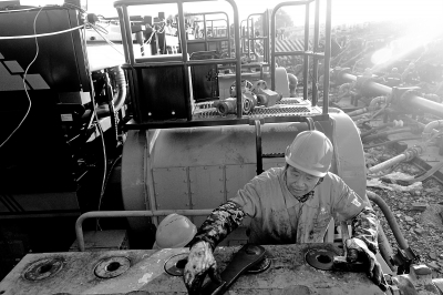 11月10日,华东油气溱页1HF井圆满完成储层改造施工。该井是华东油气部署在江苏省泰州市姜堰区溱潼镇的一口页岩油风险探井,主要探索阜宁组远离火成岩发育区的页岩油潜力,评价产能并落实预测储量。图为压裂队员工保养压裂设备。本报记者 沈志军 通讯员 严 燃 林 刚 摄影报道