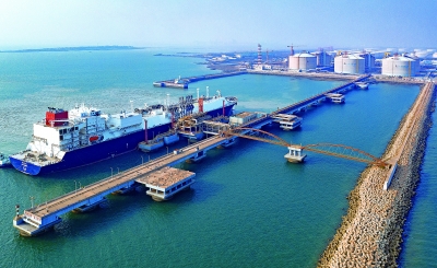 “中能青岛”油轮在天然气分公司青岛LNG接收站码头靠岸卸货。该接收站具备接卸世界上最大的26.6万立方米LNG船的通航条件。