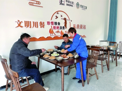 在深入开展“我为群众办实事”实践活动中,河南周口石油按照“2+7+X”(“2”指提供加能、购物两项基本服务,“7”即提供停车、休息、餐饮等7项核心服务,“X”是指提供若干项配套服务)的标准精心选点,在位于国(省)道交叉口处的商水东海加油站建成首个“司机之家”,让货车司机能够喝口热水、吃口热饭、洗个热水澡、睡个安稳觉,受到好评。 图为11月6日,加油站员工为货车司机送上丰盛的午餐。 王海霞 摄