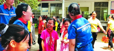 ▼聊到有趣的事情,志愿者与孩子们开怀大笑。