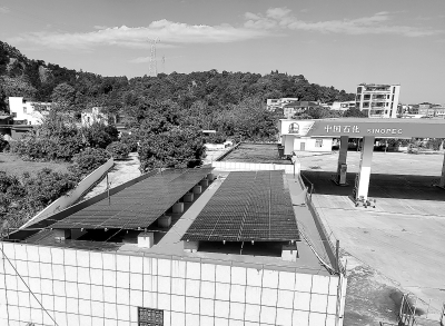 11月25日,广东肇庆石油在山咀加油站建成第一座分布式光伏发电站。该站利用员工宿舍屋顶铺设光伏板,年发电量可达3.41万千瓦时,不仅供加油站日常使用,余电还可以返供电网。图为该发电站现场。 刘文雄 摄 陈顺江 文