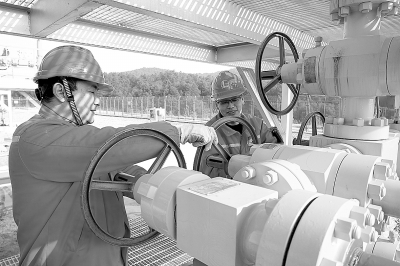 江汉油田涪陵页岩气田员工在调整气井参数。 宋国梁 摄