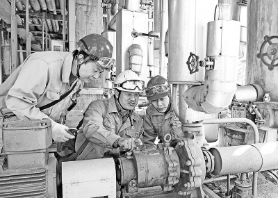 临近年末,仪征化纤PTA部党支部充分发挥战斗堡垒作用,带头进一步加强安全生产。PTA装置主任技师、党员曹飞积极开展传帮带,把培训放到生产现场,促进青工安全生产水平提升,保障装置安稳运行。图为曹飞(中)在装置区给岗位员工讲解操作要领。刘玉福 摄