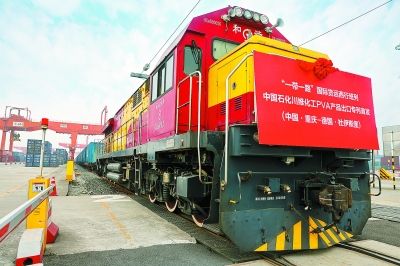 川维化工的聚乙烯醇产品由“中欧”火车专列从重庆发往德国杜伊斯堡。