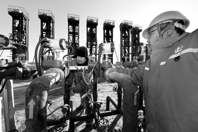 近日,寒潮来袭,胜利油田河口采油厂启动寒潮应急预案,加强油井升温加压工作,密切关注油水井和管线压力变化,通过防冻防凝手段,确保2000多口油井生产正常,夯实稳产基础。图为管理七区员工冒着刺骨的寒风,在陈庄油田对稠油生产井实施掺水调配工作。吴木水 摄 赵 娟 文
