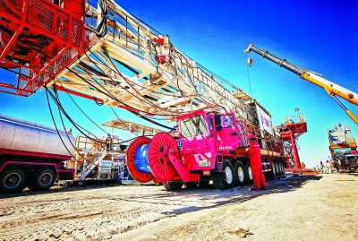 ▲胜利石油工程科威特钻井项目管理部修井队搬迁施工现场。