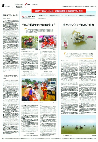 2021年疫情尚未离去,洪水又不期而至。面对考验,油田企业员工迎难而上,扛起责任与担当。8月1日,石油工程建设公司江苏油建的一支科研团队历经26天的艰苦攻关,终于完成国家管网的一个课题实验。然而扬州突发的疫情,让这些在外工作的油建员工一时有家难回。他们交接完手头的工作,顶着压力又立即奔赴新的战场。上海海洋石油局物探分公司21名员工,在俄罗斯单日新增新冠肺炎病例高达3万多的情况下,护送发现6号以船舶光租的方式,再次进军国际市场,在逆行中彰显出“发现精神”。在滔滔的洪水中,河南油田消保中心救援队员不顾个人安危,搜救转移被困群众1650人;在肆虐的台风中,江苏油田两名采油工46小时值守在被洪水围困的“孤岛”平台,确保了高集湖区164口油水井安全生产。 相关报道链接 2021年8月9日《洪水中,守护“孤岛”油井》 2021年8月16日《疫情严控下,他们各赴新的战场》 2021年12月20日《逆行中的“发现精神”》