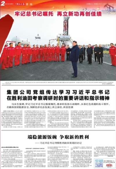 10月25日,中国石化报推出4个版面的特别报道,全面报道习近平总书记视察胜利油田重要指示精神。各级干部员工表示,要始终牢记嘱托,永葆战斗情怀,高举旗帜,再立新功、再创佳绩。