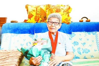 “七一”前夕,一位老人慢慢走进银行,认真写下汇款单,一笔一画签好自己的名字,将积攒多年的100万元特殊党费汇入公司党委账户,交上级党组织后转到中组部指定账户。她,就是95岁高龄的南京工程公司老党员周奇君。 图为周奇君获得“光荣在党50年”奖章。李 舒 摄