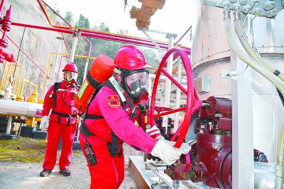 ?节日期间,普光气田日产天然气2400余万立方米,为川气东送管道沿线2省6市数千家企业、2亿余居民提供清洁绿色天然气。图为1月2日,普光气田大湾405集气站员工在认真巡检,调控参数,确保平稳供气。 杨 德 摄 卢晓莉 文