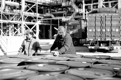 中安联合加强废旧化工产品包装桶管理,建立管理台账,划定临时存放点,做好加盖防雨布等措施,并要求相关单位及时回收,消除环保隐患。图为2021年12月27日,中安联合MTO装置现场,废旧黄油抑制剂包装桶即将被装车回收。赵天奇 摄