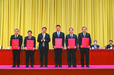 会上,马永生向集团公司油气开发领域首席科学家曾大乾、集团公司石油炼制领域首席科学家许友好、集团公司化工与材料领域首席科学家吴长江等首批3名集团公司首席科学家颁发聘书,为集团公司石油地质专业高级专家黄仁春、集团公司石油化工专业高级专家王振维颁发2021年度中国石化科技创新功勋奖证书。