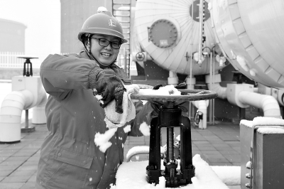 近日,河南迎来新年第一场雪。中原油田生产岗位人员及时清理积雪,加强设备巡检,做好冬季防护措施,确保油气安全生产。目前,生产均按计划运行。范 明 摄 赵淑娇 文