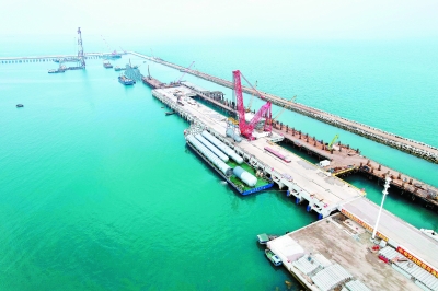 近期,海南炼化100万吨/年乙烯及炼油改扩建项目正紧锣密鼓地推进中,大件设备到货密集。为满足大型设备载重需求,该公司特意对码头地面进行了加厚处理,并加高了防浪堤,确保安全接卸。截至目前,配套码头4号泊位已完成28船次共计108件大型设备接卸,为乙烯项目大型设备顺利安装提供了有力保障。 据了解,该项目配套码头共建有4个泊位,预计吞吐量为508.13万吨/年,其余3个泊位正在加紧建设中。接下来,海南炼化将继续秉承安全、平稳、高效原则,全力做好项目海运大件设备的进场安装工作。图为装有大型设备的船只停靠在4号泊位准备接卸。刘海龙 马振锋 摄影报道