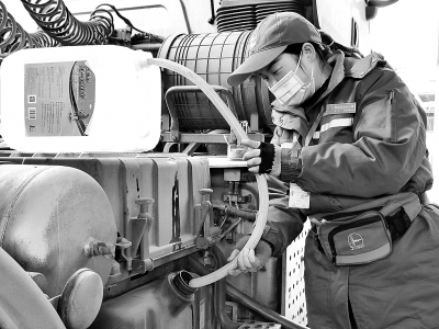 近日,为有效减轻货车加注尾气处理液的劳动强度,贵州贵阳石油小寨坝加油站员工利用废弃胶管自制导流管,通过虹吸原理解决滴漏、加注不彻底问题。他们将自吸式导流管赠与客户,帮助客户轻松加注尾气处理液,省时又省力,受到称赞,促使尾气处理液销量大幅提升。图为该站员工使用自吸式导流管为货车加注尾气处理液。杜 薇 摄