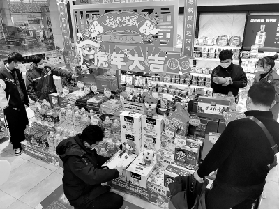 春节前,浙江石油各易捷便利店优选100多种商品开展年货节优惠活动,提前备足商品,设立特色堆头,提供搬货至后备厢、送货上门等服务,满足客户消费需求。图为客户在温州石油吴桥加油站购买年货。傅奕佳 摄